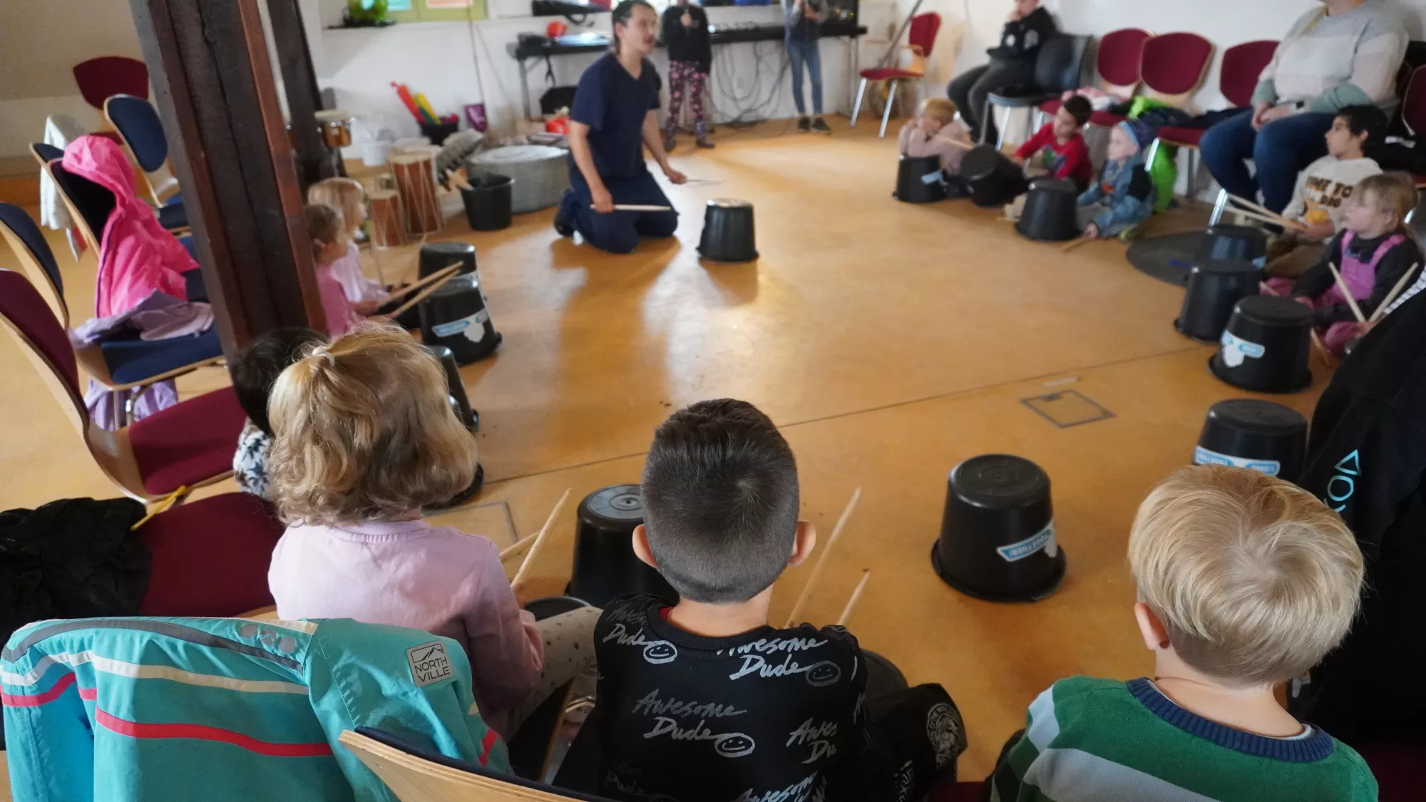 Ideal for project days or introductory sessions; works well with Kids Lab (rhythm, voice, movement, games, optional DIY instrument building).